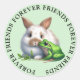 Schöner Aufkleber eines niedlichen, weißen und bräunlichen Hasen und grünen Frosch Freunde machen. Spaß, Niedliche Sticker. Ideal für all Ihre Stationären, Handwerkskunst oder Schulprojekte. Kleben Sie Ihre Lunchboxen oder Wasserflaschen an. Freundschaftsaufkleber. Herbstkleber, Forever Freunde gedruckt in einem Kreis um die Außenseite dieser Aufkleber.