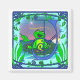 Der Letter J, Ornamental / Illuminated Initial, hat einen niedlichen Frosch sitzend auf einem Lilienpolster und beobachtet den Zauber der Natur, wie die Sets der Sonne und die kleinen Wellenlängen sich ruhig bis ans Ufer. Ein dunkelblauer Zierrahmen mit grünen Weinreben und Blätter auf türkisfarbenem Hintergrund umgibt das Froschbild mit Libellen, die in die Szene hineinlaufen; der große dekorative Buchstabe J ist in dunkelblau und die Touchs oben auf dem dekorativen Rahmen nach unten.