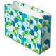 Niedlicher Frosch zum personalisierten Geburtstag Geschenktasche für einen Jungen Geburtstag. Ein bezaubernder Frosch in einem Geburtstagshut, der ein Geschenk mit einem niedlichen Polka Dot Hintergrund in Blau und Grün hält. Bearbeiten Sie den Text im personalisierbaren Bereich.