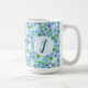 Diese niedliche Froschkunst Kaffee-Tasse hat ein Monogramm und handgezeichnete grüne Frösche mit grünen, blauen und lila Wasserlilien auf hellblauem Hintergrund. Passen Sie das Design an, indem Sie das erste bearbeiten, um es zu personalisieren. Es ist ein schicke, mädchenhaftes Design, das eine nette Ergänzung zu Ihrer Morgenkaffee-Routine sein wird. Ideal für Amphibienliebhaber!