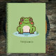Ein grünes Notizbuch mit einer Abbildung eines niedlichen Frosches auf seinem Teich und anpassbarem Text unten! Es könnte perfekt für ein Kind oder einen Freund, der Kawaii Liebe Tier und Natur!