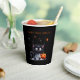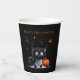 Niedliche Funny Black Kitten Halloween Papier Cups. Ein lustiges und lustiges Trick-oder-Leckerei-Trivet mit einem mit Augen, niedlichen, aber beängstigenden Kätzchen, das ein schlichtes Geisterkostüm trägt! Das unheimliche Kätzchen und die skurrile Ausstattung verleihen dem Kätzchen eine Touch Halloween-Charme. Füge deinen eigenen Text hinzu oder verwende "Happy Halloween".