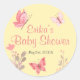 Adorly mädchenhafte Babyduschaufkleber mit rosa Schmetterlingen gepaart mit ein paar rosa Blume. Gelber Hintergrund, passend zu anderen Babydusche in derselben Kollektion. Ideal als Baby Dusche Einladungen Umschlag Aufkleber, bevorzugen Aufkleber und mehr. Teil der Sammlung von Stationierwaren und Party aus rosa Schmetterlingen