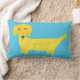 Fügen Sie Ihrem Sofa oder Bett eine Bananen-Touch mit diesem niedlichen Kissen hinzu. Es zeigt einen Hund im Stil einer Dackel aus gelbem Bananen-Set vor einem hellblauen Hintergrund. Die Rückseite weist ein koordinierendes Blätter aus gelben Bananenhunden und grünen Palmen auf.