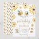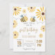 Niedliche Gelbe Biene und Sonnenblumen Einladung zum ersten Geburtstag