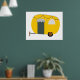 Ein hübscher und niedlich aussehender gelber Wohnwagen. Dieses Design sieht wirklich effektiv aus auf diesem Poster