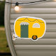 Ein hübscher und niedlich aussehender gelber Wohnwagen. Dieses Design sieht auf diesen Aufklebern wirklich effektiv aus