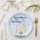 Niedlich-Gelber Dinosaurier mit glücklichen Sterne Pappteller