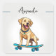Niedlich-Gelbes Labrador-Welpe auf Skateboard Quadratischer Aufkleber
