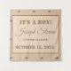 Personalisierte Niedlich gepolsterte Tiere Design weist einen bräunlichen Hintergrund auf, um den Satz "It's a Boy!" in brauner Schrift zu schreiben. Auch in brauner Schrift ist der Name des Babys und das Fälligkeitsdatum. Der Design-Hintergrund zeichnet sich durch ein Bild niedlicher, kuschelig gestopfter Tiere aus, die alle zusammen gezaubert und bereit sind, das Baby willkommen zu heißen! Entspricht der Kollektion "Niedlich gestopfte Tiere".
