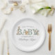 Diese Teller mit Babydusche sind in einem halbgrünen, geschlechtsneutralen Stil gehalten und zeigen niedliche, kleine gestopfte Tiere. Das Wort "BABY" wird in Hauptstädte über den oberen Teil hinweg gedruckt. Tiere Stuffies betonen den Brief. Eine Kuh und eine Maus werden auf das links platziert, in der Mitte befindet sich ein Löwenkrug. Auf der rechten Seite befinden sich ein Elefant und eine Ente.