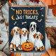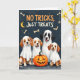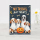 Niedliche Geisterhunde lustige Halloween-Karten sind eine festliche Möglichkeit, Halloween-Wünsche zu schicken. Auf der Vorderseite steht "No Tricks, Just Leckereien" und Sie können den Insidertext mit Ihrer eigenen Personalisierung anpassen.