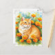 Niedliche Ingwer Katze mit Marigold Summer Blume Postkarte für Postüberquerung