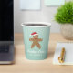 Dieser Weihnachtskekse-Tasse ist mit einem niedlichen Lebkuchenmann in einer Weihnachtsmannmütze ausgestattet. Der Hintergrund ist ein weiches aquamarin mit weißen Konfetti-Punkten, die wie Schnee fallen aussehen.