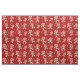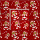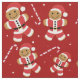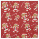 Weihnachtsstoff mit Lebkuchengebäck in Santa Outfits. Die lächelnden Weihnachtskekse-Illustrationen sind in einem Muster mit Bonbons und Schnee. Die Stoffe sind in Rot und Weiß gehalten und sind für Ihr Urlaubsprojekt vorbereitet.