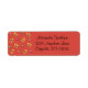 Ein niedliches Muster von Lebkuchenmännern mit Kleider mit Weihnachtsschmuck und Sternenkeksen, die auf einem roten Hintergrund mit stilisierten Bäumen und Schneeflocken verstreut sind.