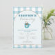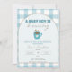 Niedlicher blauer Gingham "A Baby Boy is Brewing" Babydusche Thema.