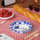 Niedlich Gingham, Blue Fish & Balloon 1. Geburtsta Pappteller