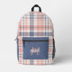 Niedlich Giralrosa und blaue Karierte Monogramm Bedruckter Rucksack