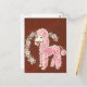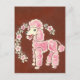 Niedlicher, skurriler, pinkfarbener Puppenhund. Er hat ein fröhliches Lächeln und ist von hübschen femininen rosa Rosen umgeben. Mädchen, Spaß. und modern.