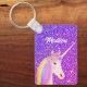 Niedlich Girly Unicorn Lila Glitzer Personalisiert Schlüsselanhänger