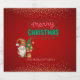 Niedliches Gnome mit Kiefernbaum, Konfetti und Frohe Weihnachten auf einem roten Hintergrund.