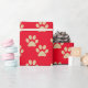 Dieses bezaubernde Verpackungspapier für Liebhaber von Haustieren zeichnet sich durch ein niedliches Imitat-Glitzer-Pfotenmuster auf einem roten Hintergrund aus. Das ist ein ausgezeichnetes Weihnachts- oder Feiertagsgeschenk.