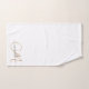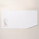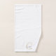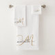 Personalisiertes weißes Handtuch mit goldfarbenem Original Monogramm und Skriptname, Badetuch Set. Die elegante, typisch minimalistische Dekoration der Badezimmer ist modern.