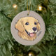 Dieses personalisierte Keramik-Ornament verfügt über niedliche digitale Kunstwerke mit goldenem Retriever und Namen. Das Bild und der Name des Begleiters können angepasst werden.