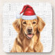 Spaß Untersetzer Set für die Person, die Lieben ihren Golden Retriever Hund. Diese trägt eine Weihnachtsmannmütze für eine stilvolle Herangehensweise an die Urlaubssaison und sitzt vor einem lustigen Wortkunsthintergrund, um Ihre Zuhause oder Ihr Büro mit saisonalem Liebespass zu dekorieren.