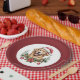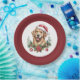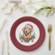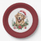 Diese golden Retriever Weihnachtszeitung Teller sind die perfekte Ergänzung zu jedem Familienessen. Dieses Design ist komplett mit einer hübsch niedlichen goldenen Retriever Aquarellgrafik. Der Golden Retriever Hund trägt eine Weihnachtsmannmütze und ist von verschiedenen Weihnachtsdekorationen umgeben. Die Hintergrundfarbe ist rot. Genießen Sie den Urlaub!