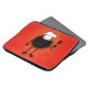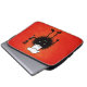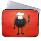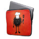 Niedlicher, lustiger Koch Laptop-Ärmel mit einem haarigen bösen Käfer - Koch. Der böse Charakter, der den Hut eines Koch trägt, hält einen Spatel, und das böse Grinsen zeigt seine scharfen Zähne. Diese lustige Illustration hat einen intensiv orangefarbenen Hintergrund.