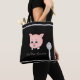 Niedliches Gourmet-kleines Schwein mit Löffel auf schwarzem Hintergrund Tote Tag. Der Text von Le Petit Gourmet kann angepasst werden.