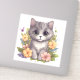 Niedlich Grau Kitten mit Frühlingsblumen Aufkleber