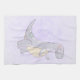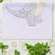Ein Küchentuch mit einer niedlichen Abbildung mit einem grauen lila Dinosaurier.