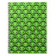 Helles, grünes und schwarzes Notizbuch mit niedlichen grünen Außerirdischen mit verschiedenen Gesichtsausdrücken.