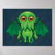 Vector Cartoon Illustration des niedlichen grünen Cthulhu-Monsters mit großen orangefarbenen Augen. Tags: Cthulhu, Oktopus, Monster, Lovecraft, Chibi, Tintenfisch, Meer, Ozean, Tier, Kreatur