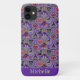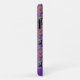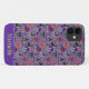 Dieses Niedliche Halloween-Handy hat ein niedliches Halloween-Sweatsmuster und basiert auf dem Thema der klassischen Fair Isle Strickdesigns. Das Muster besteht aus lila und grünen Kreisen und Diamantstreifen. Jede Form hat ein anderes niedliches Halloween-Motiv. Sie haben eine schwarze Katze mit dem Mond, Frankensteins Kopf, einen fröhlichen Jack oder einen Laternenkürbis, einen Schädel mit rotem Auge, Hexen mit Füßen, einen Friedhof mit Gespenstern, Vampirlippen/Zähne mit Fledermäusen und einen Zaun mit einem Fallbaum auf dem Mond mit Fledermaus. Zwischen den Designs sind Süßmais, verpackte Süßigkeiten und ein Diamant-Design. Unten in passenden Farben ist ein Name. Personalisieren Sie dies mit Ihrem eigenen Namen.