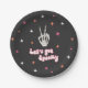 Diese Halloween-Teller haben den Text Let's spooky in einer trendigen Retro-Typografie und ein Skelett Hand geben ein Friedenszeichen und Sternexplosionen in rosa Orange und Weiß. Zusätzliche Gastgeschenke, Accessoires und Einladungen mit diesem Design-Thema sind in unserem Zazzle-Shop erhältlich, für zusätzliche Anpassung senden Sie mir eine Nachricht.