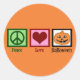 Friede Liebe Halloween. Ein Friedensschild, ein Herz und ein Jack aus Laternenholz vor einem orangefarbenen Hintergrund machen den Oktober zu einem großartigen Geschenk.