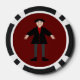 Dieses phantastische Set von Poker-Chips bietet ein digitales Kunstbild eines gruseligen, aber niedlichen Halloween-Vampirs. Der Vampir ist mit schwarzem Haar, einem roten Shirt und einer schwarzen Jacke mit blutroten Herzknöpfen versehen. Er hat ein gruseliges Lächeln und lange weiße Reißzähne. Er hat auch gelbe Fingernägel, lila Socken und schwarze Schuhe mit goldenen Schnallen auf ihnen. Seine Arme sind offen und heißen Sie für eine böse Umarmung willkommen.