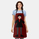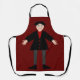 Diese phantastische Schürze zeigt ein digitales Kunstbild eines gruseligen, aber niedlichen Halloween-Vampirs. Der Vampir ist mit schwarzem Haar, einem roten Shirt und einer schwarzen Jacke mit blutroten Herzknöpfen versehen. Er hat ein gruseliges Lächeln und lange weiße Reißzähne. Er hat auch gelbe Fingernägel, lila Socken und schwarze Schuhe mit goldenen Schnallen auf ihnen. Seine Arme sind offen und heißen Sie für eine böse Umarmung willkommen.