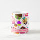 Eine wunderschöne niedliche Cupcake-Tasse, um Ihrem Lieblingskuchen Geburtstag zu sagen. Ideal für die besten Freunde. Cupcakes und Süßigkeiten bilden dieses süße und bunte Muster - mit rosa Typografie. Fügen Sie Ihre eigene Nachricht oder Ihren eigenen Namen zu personalisieren.