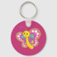 Adorable Smiley Schmetterling auf benutzerdefinierten, gürtelrosa personalisierten Button Schlüsselanhänger