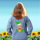 Moderne glückliche und niedliche Weihnachtself mit einer Geschenkboxen Jacket. Text kann personalisiert sein.