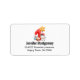 Adressetiketten mit einem bezaubernden Bild mit einer lächelnden Kuh, mit einem goldenen Sternballon und etwas Kuchen und einem Geschenk.