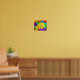 Eine hübsche und niedliche Blume mit Happy-Gesicht, die sich auf einem Bett mit hellen neonfarbenen Blume ruht. Farbenfroh und fröhlich.