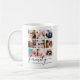 Moderne Tasse mit einer 18-Foto-Collage von Ihnen, Ihrer Familie und Freunden, und dem niedlichen Sprichwort "Familie ist jeder, der Sie bedingungslos Lieben" in einem trendigen Drehbuch und Serif-Schriftart.
