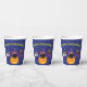 Dieses niedliche Halloween-Papier-Becher bietet bezaubernde Kätzchen mit Hexenhüten und Jack o' Laterne auf lila Sternenhimmel. Text "Happy Halloween" in sprichwörtlichem Grün. Einfach anpassen, indem Sie auf "Personalisieren" klicken. Ideal für Ihr Halloween-Party.
