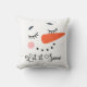 Dieses niedliche Kissen besticht durch einen glücklichen Schneemann mit rosigen Wangen, eine Karottennase, niedliche Wimpern und ein Lächeln Kohle mit den Worten "Let it Snow" in einem dekorativen Schriftart.